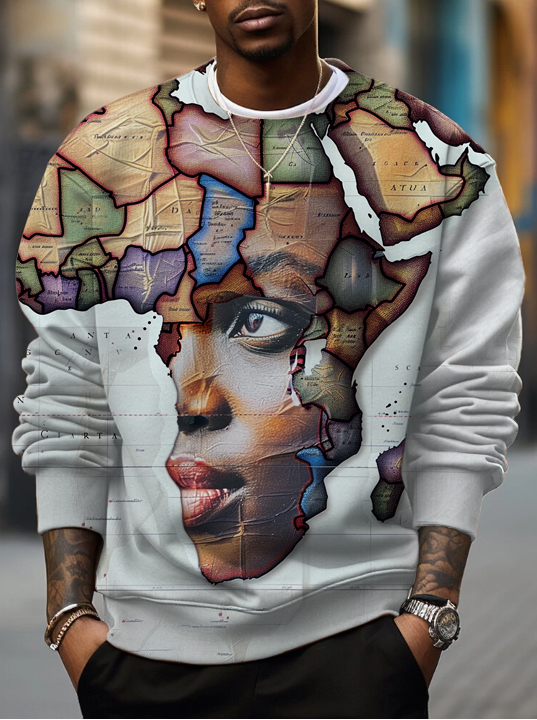 Men's Vintage Africa Map Art Print Casual Sweatshirt