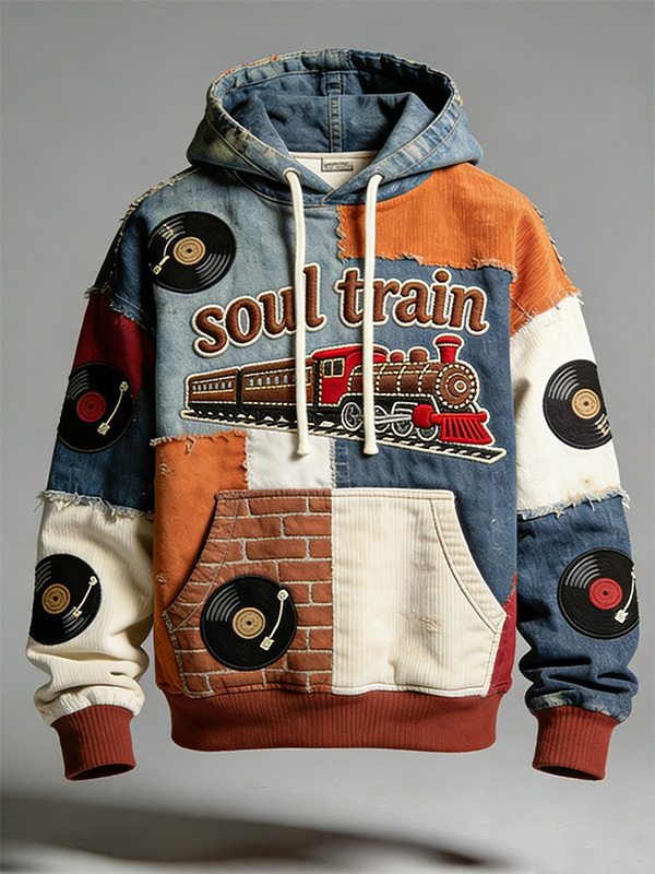 Men's Colorblock Soul Train Vinyl Record Art Print Casual Hoodie