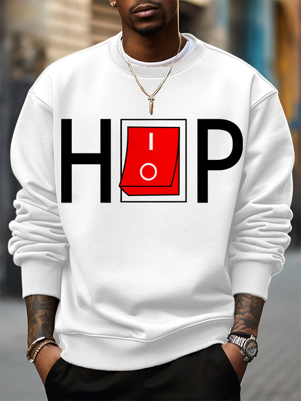 Men's Hiphop Switch Toggle Button Art Print Cotton Casual Sweatshirt