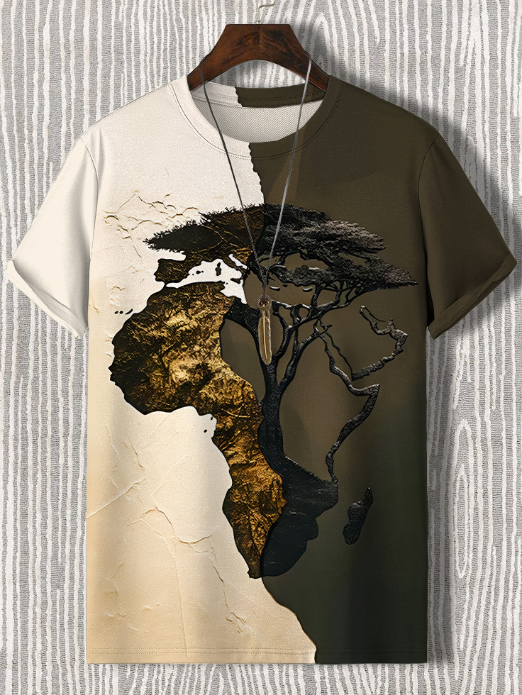 Men's Africa Map Tree Roots Splicing Art Print T-Shirt