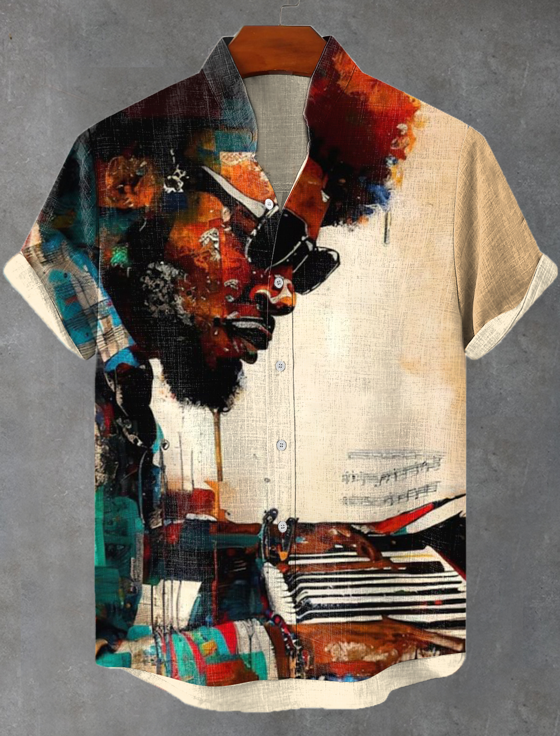 Men's Black Blues Music Oil Painting Print Short Sleeve Shirt