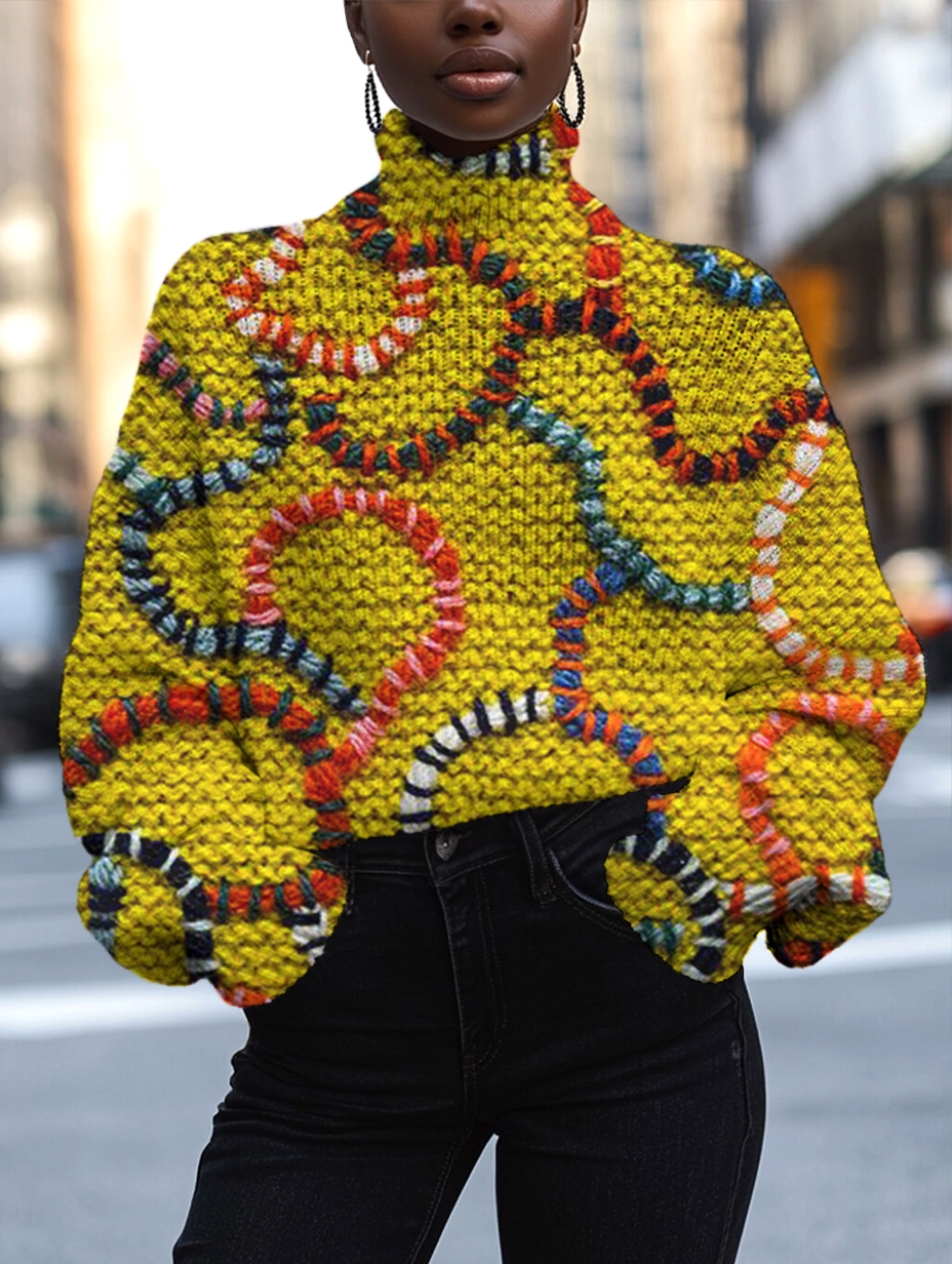 Women's Line Yarn Art Print High Neck Knit Sweatshirt